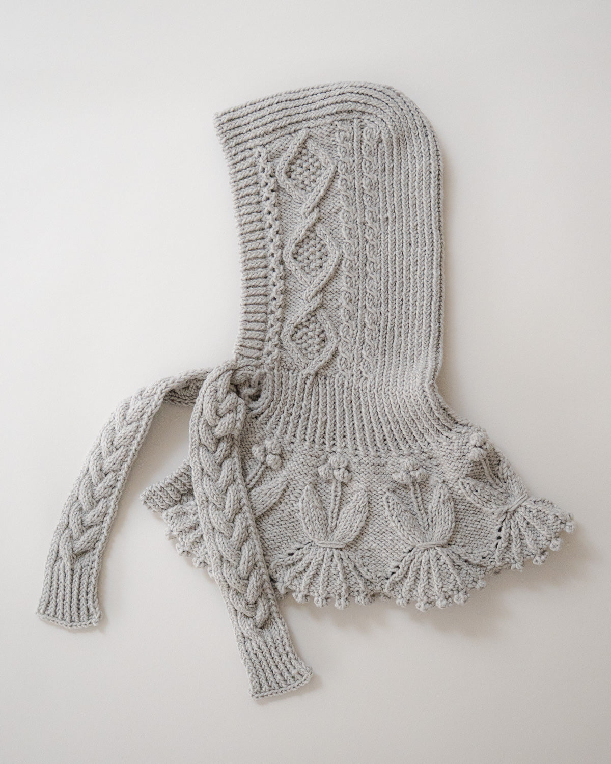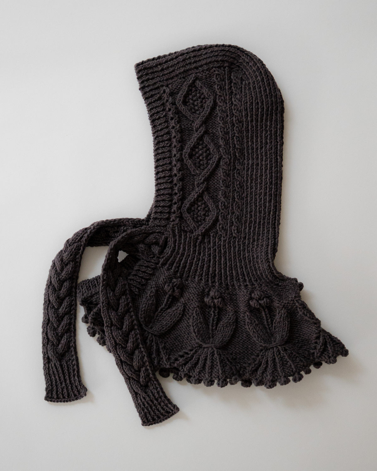数年前に発表したこちらの【Knit Bonnet Cape】は、完売後もたくさんのお問い合わせをいただきました。2025年は新色を含む5つのカラーをそろえて再登場です。